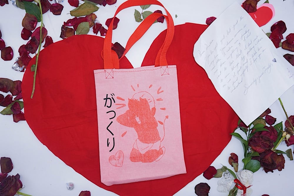This bag is handmade through and through! It's hand sewn, hand dyed, and the design screen printed is hand drawn! I really wanted to focus a little more on the ladies side for the this drop. I think this is a cute little tote bag that you need in your collection. This bag is super limited, I would pull the trigger on it.